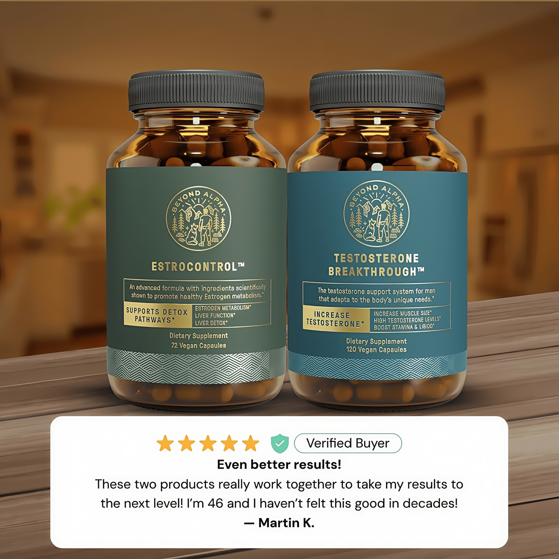 T Breakthrough™ and EstroControl™ are made with all-natural, scientifically-backed ingredients, and there are no known side effects when taken as directed. However, if you have any pre-existing medical conditions or are on medication, it’s always a good idea to consult your doctor before starting any new supplement.
