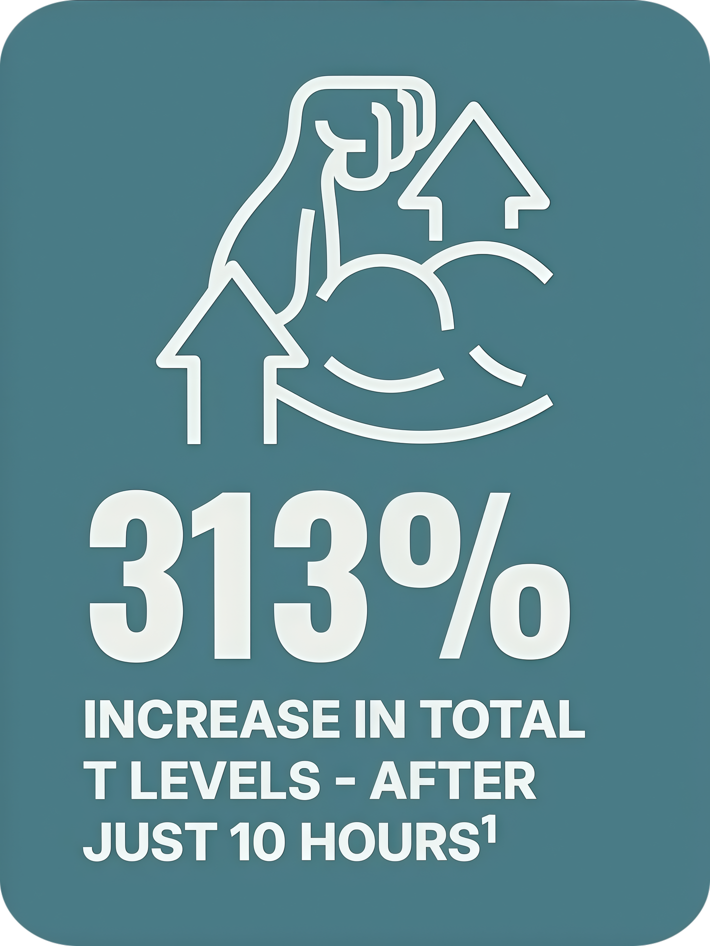 Nettle is like a supercharger for our T levels. It multiplies the free T circulating in our veins for peak vitality, performance, strength, drive, and mood. It does it by reducing the amount of estrogen in our body… and keeping a high concentration of the Masculinity Hormone in our blood for longer - so we can access it all day long.